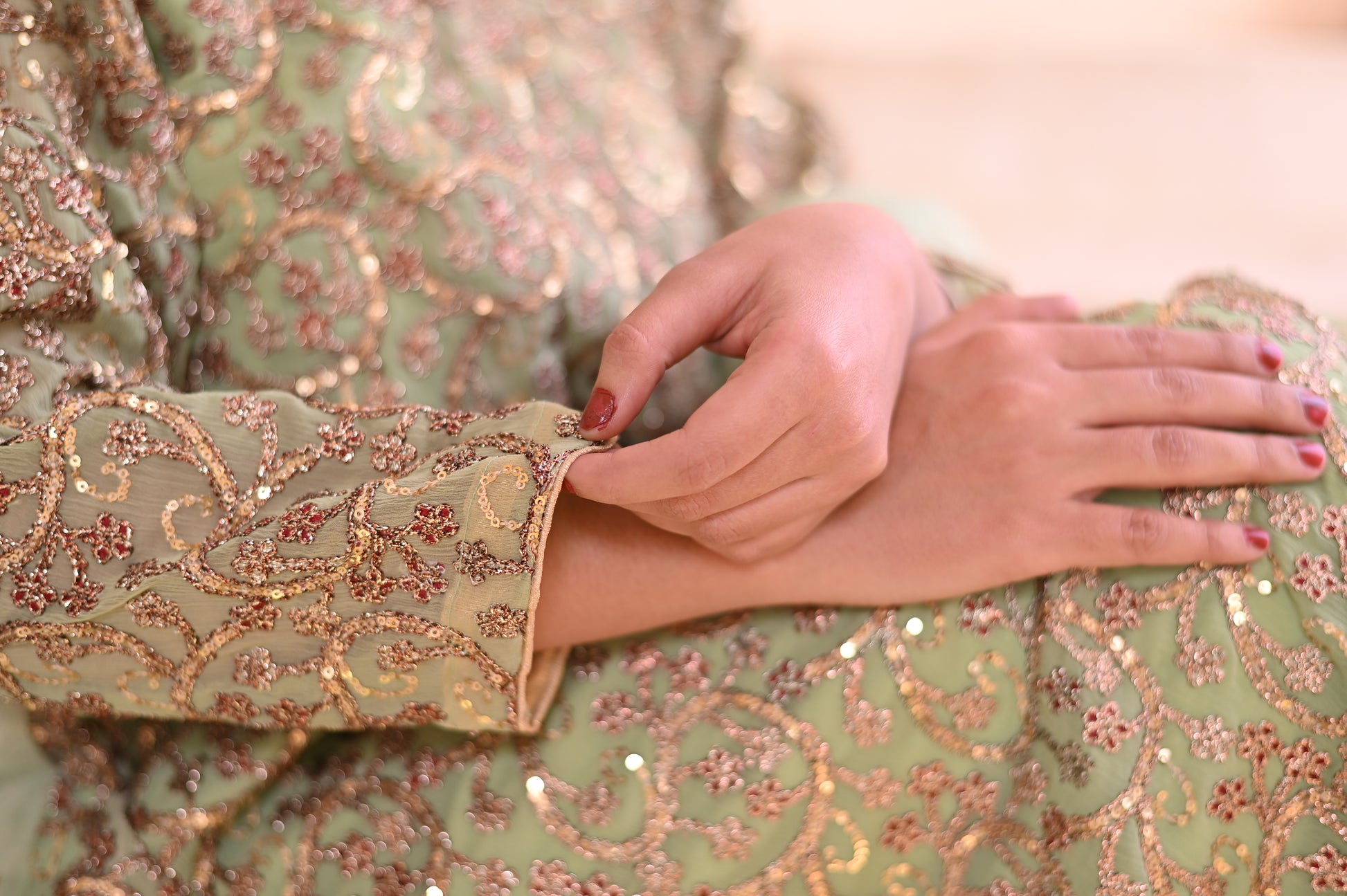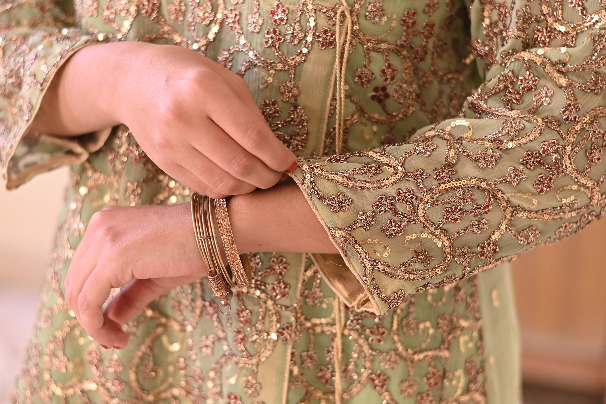 Pastel Green and Gold Embroidered 3 piece suit